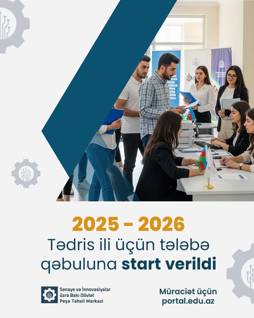Sənaye və İnnovasiyalar üzrə Bakı Dövlət Peşə Təhsil Mərkəzi 2025–2026-cı tədris ili üzrə tələbə qəbuluna start verib!