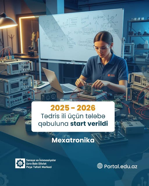 Sənaye və İnnovasiyalar üzrə Bakı Dövlət Peşə Təhsil Mərkəzi 2025–2026-cı tədris ili üzrə Mexatronika ixtisası üzrə tələbə qəbulunu elan edir!