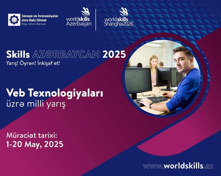 Rəqəmsal bacarıqları önə çıxarmaq və gəncləri qlobal texnologiya tendensiyalarına uyğun hazırlamaq məqsədilə WorldSkills Azerbaijan təşəbbüsü ilə Veb Texnologiyaları üzrə Milli Müsabiqə keçiriləcək. Bu müsabiqə 16–21 yaş arası gənclərə real layihələr üzərində işləmək, proqramlaşdırma və veb inkişaf sahəsində bacarıqlarını nümayiş etdirmək imkanı yaradır. İştirakçılar HTML, CSS, JavaScript və digər müasir texnologiyalardan istifadə edərək praktiki tapşırıqları yerinə yetirəcək, peşəkar mütəxəssislər tərəfindən qiymətləndiriləcək və geribildirim alacaqlar. Ən yüksək nəticə göstərən iştirakçılar Milli Komandaya seçilərək xüsusi təlim proqramlarında iştirak edəcək və WorldSkills Shanghai 2026 beynəlxalq yarışında Azərbaycanı təmsil etmək hüququ qazanacaqlar.