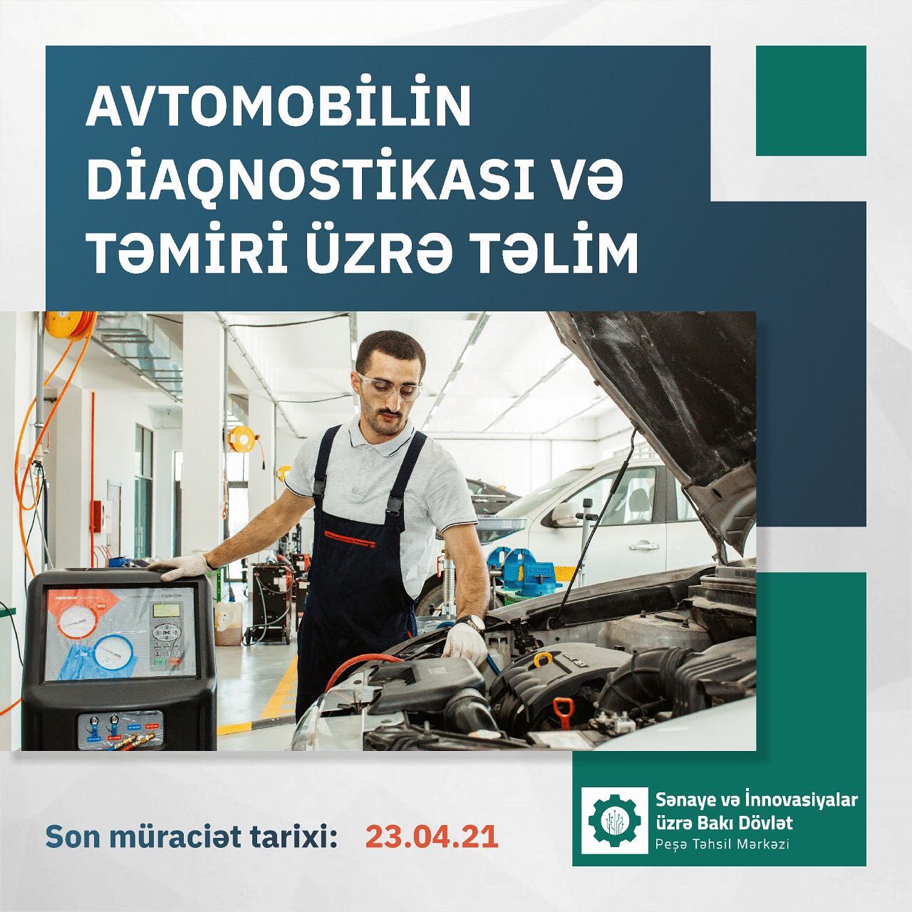 Sənaye və İnnovasiyalar üzrə Bakı Dövlət Peşə Təhsil Mərkəzi Avtomobil Diaqnostikası üzrə Təlimlərə müraciətləri qəbul edir.
