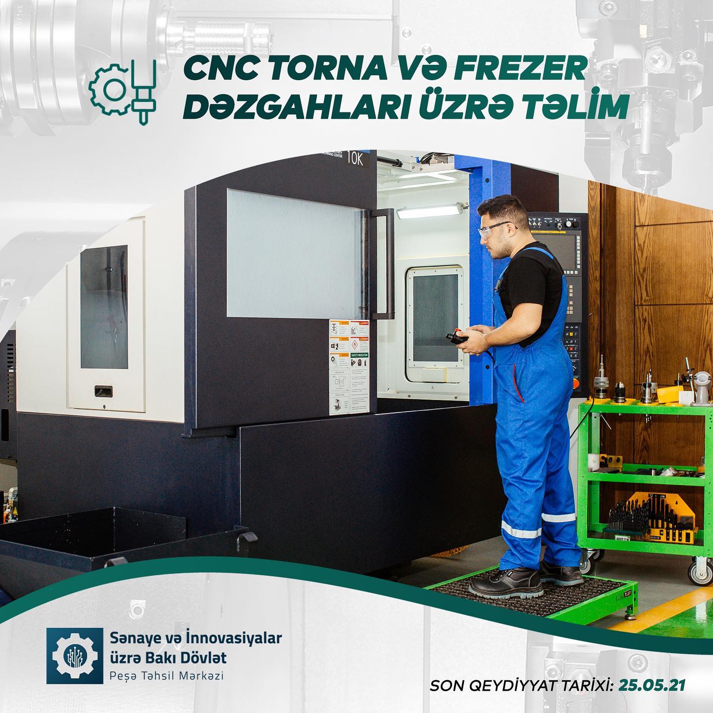 Sənaye və İnnovasiyalar üzrə Bakı Dövlət Peşə Təhsil Mərkəzi "CNC Torna və Frezer dəzgahları" üzrə təlimə qəbul elan edir.